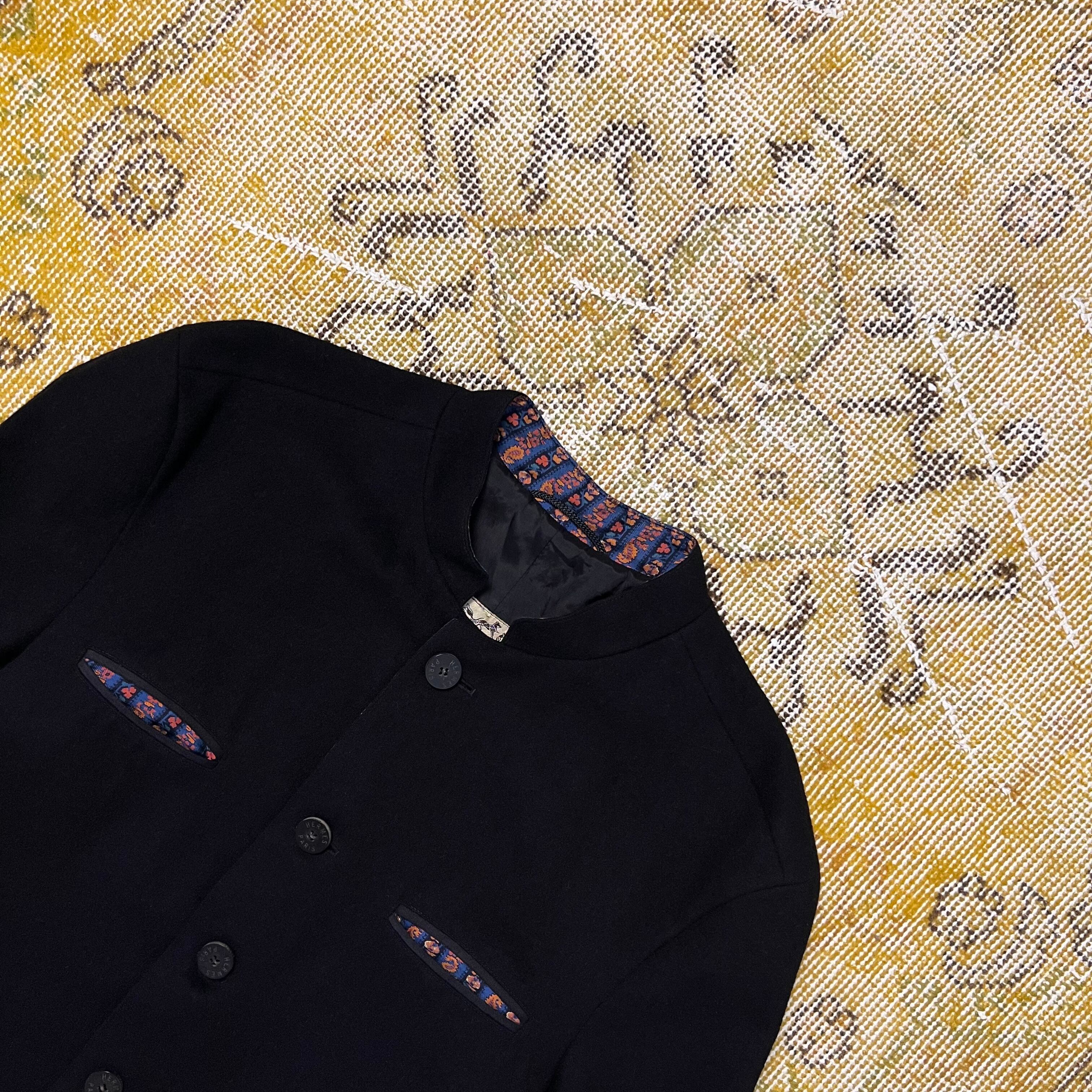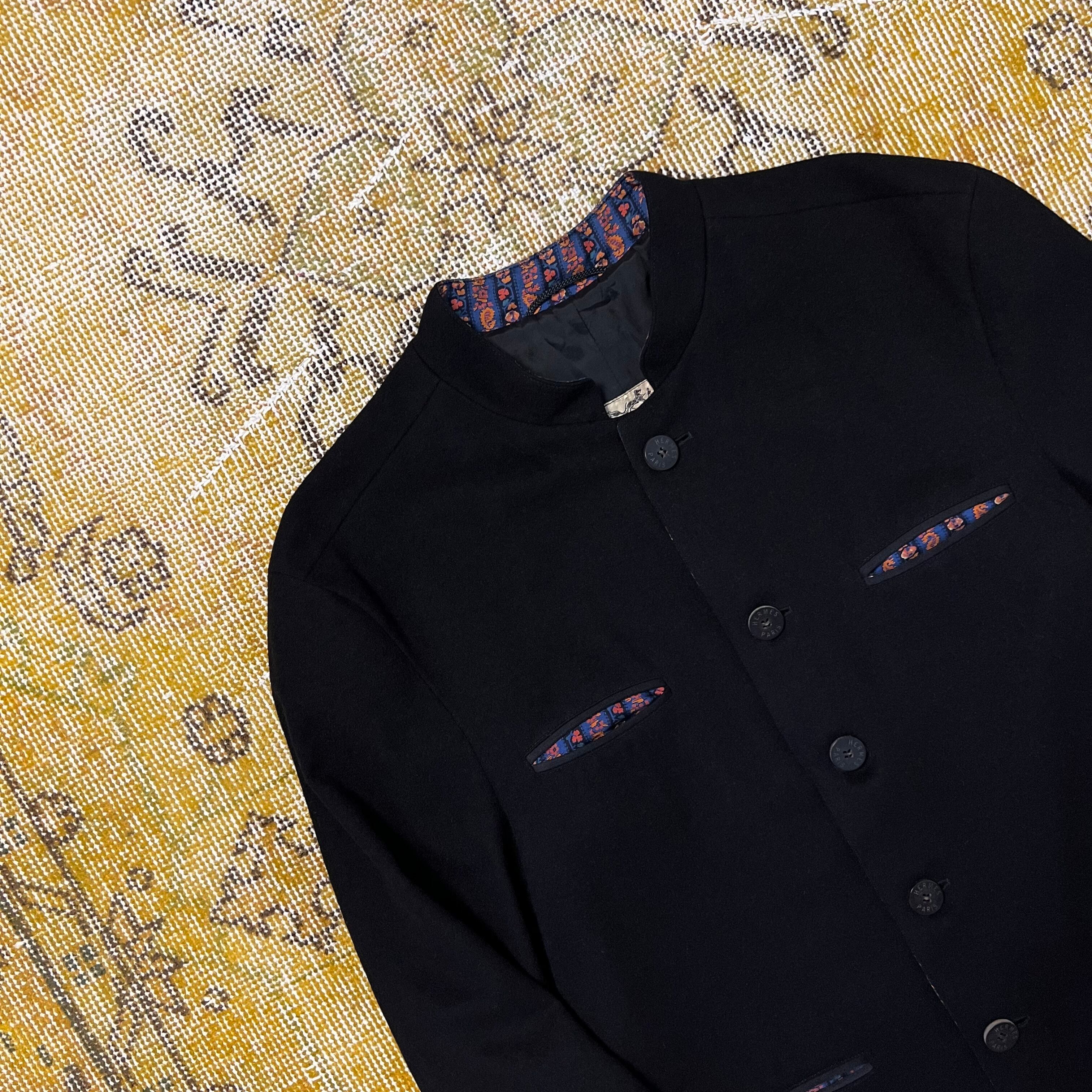 1980s Hermes homme Pure New Wool Standcollar Jacket エルメス カシミヤ ウール 毛 テーラード ジャケット スタンドカラー ヴィンテージ ビンテージ メンズ 90s