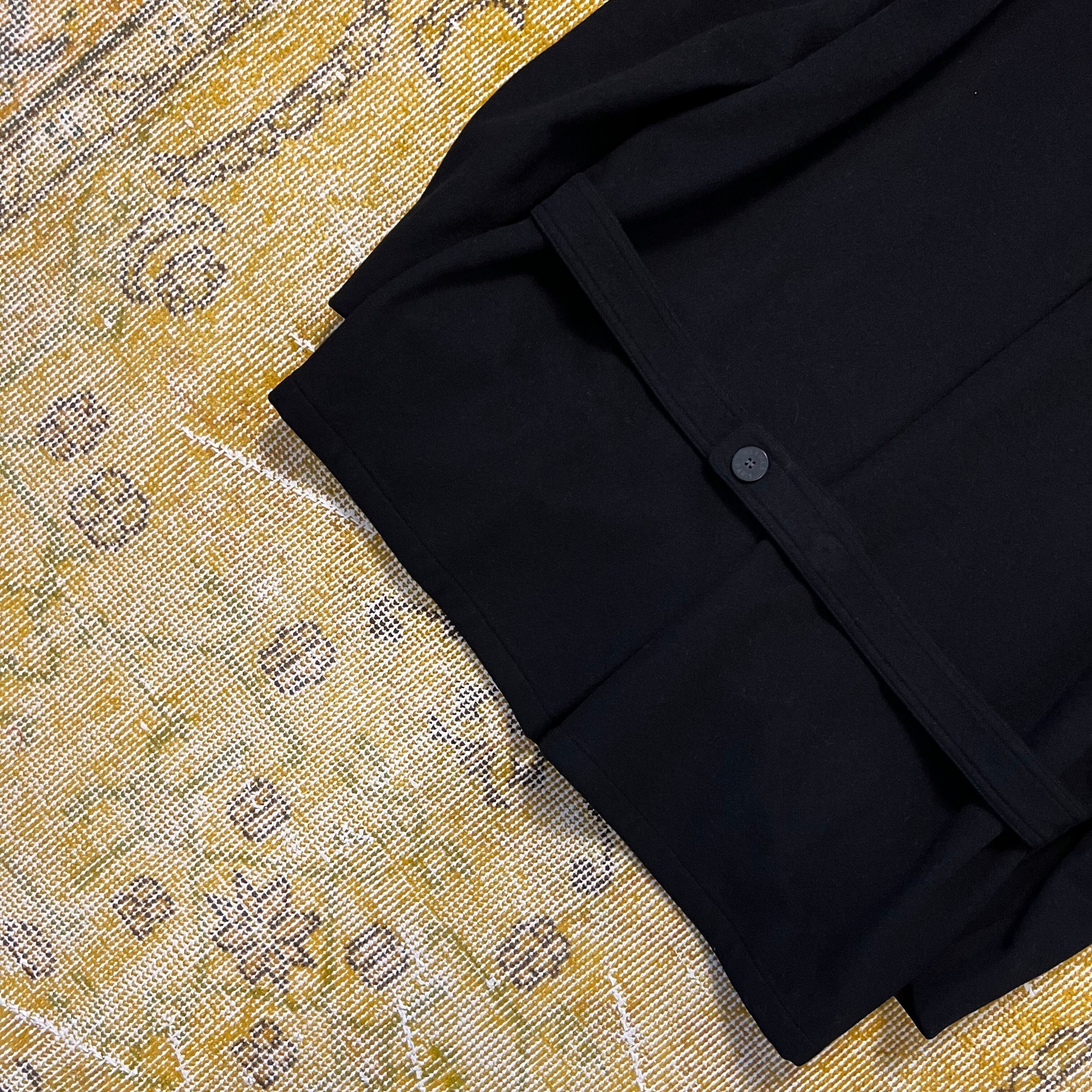 深いブラックの表情に、滑らかなウールの質感が映える端正な一着です。