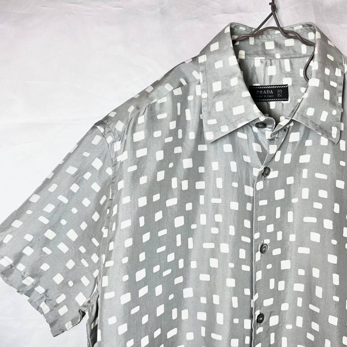 2001SS PRADA Uomo Random Square Textile Silk Shirt プラダ 総柄 シルク シャツ 半袖 ヴィンテージ ビンテージ 初期 アーカイブ メンズ