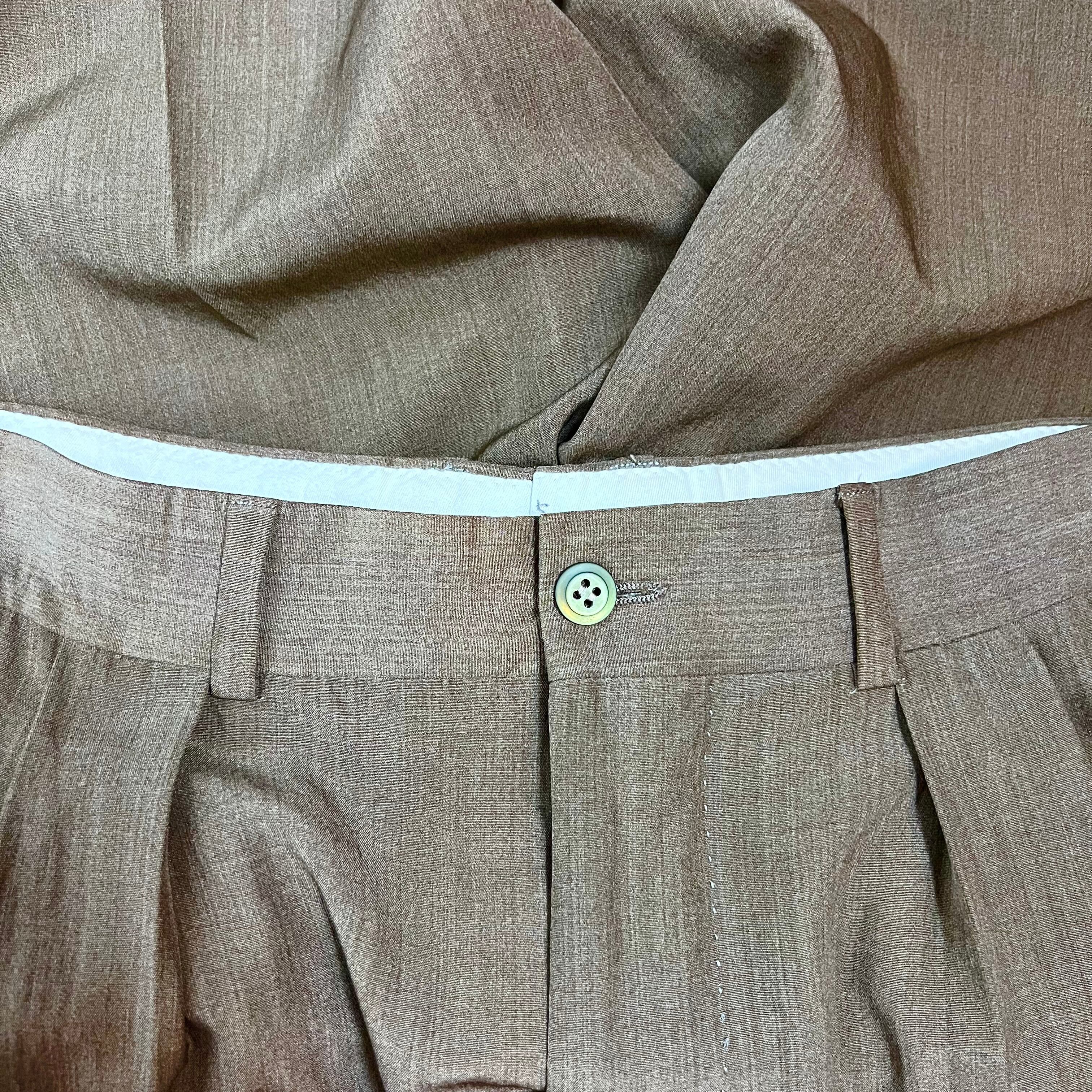 フロントのインとアウトの2タックからのレッグラインのワイドなシルエットバランスは、この時代のクラシックを味わっていただけます。